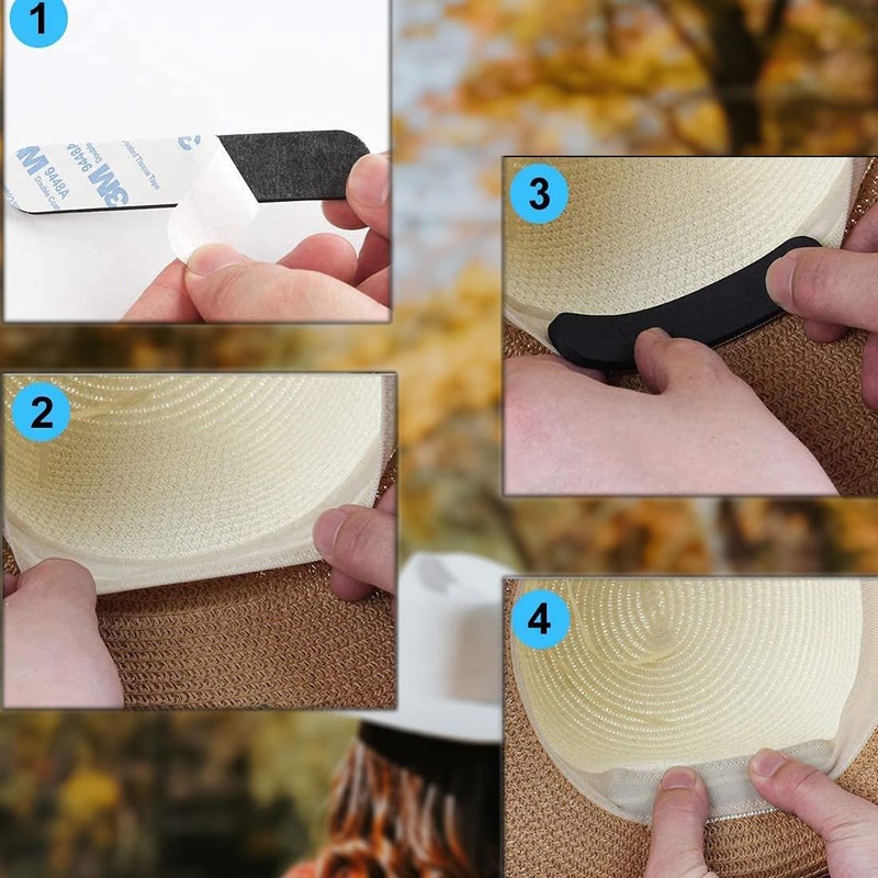 - Easy to use: make sure the surface is grease-free, clean and dry before use. Thanks to the self-adhesive fabric tape, you can easily stick the inner sides of your hats and caps by peeling off the protective film