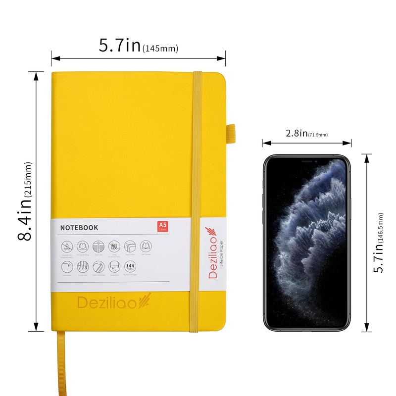 - HARDCOVER JOURNAL: Deziliao lined journal notebook includes 72 sheets, 144 pages, 100 gsm ivory paper, 1 pen loop, 1 bookmark ribbon, 1 inner pocket, and an elastic closure band. 10 Sheets of micro perforated paper for easy tear-off or archiving anytime.
