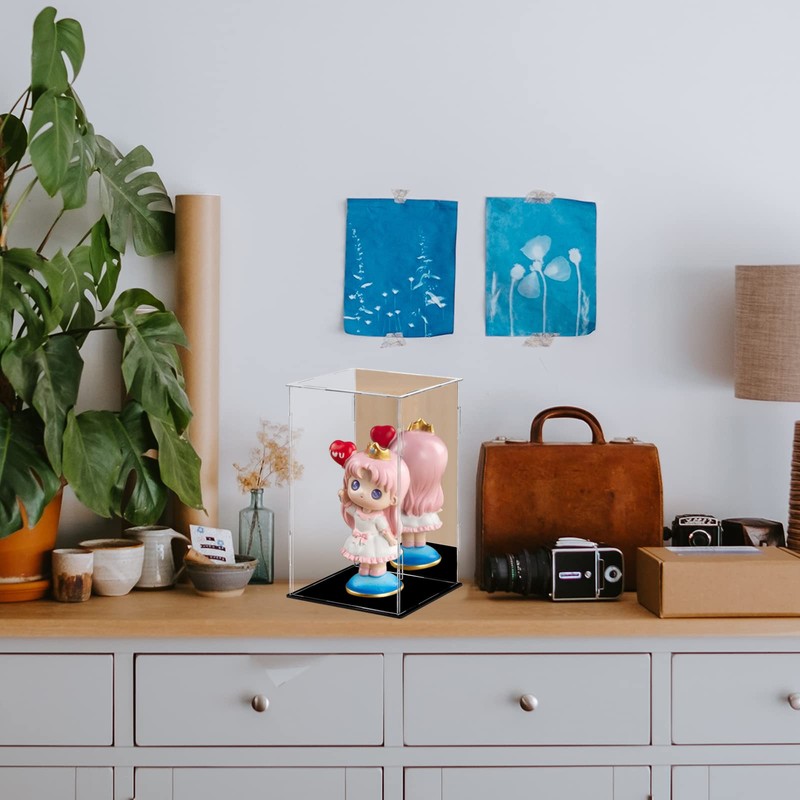 Dezzer Acrylic Display Case with Black Base, Assemble Worktop Clear Acrylic Box Organiser Dustproof Circuit Breaker for Action Figures, Toys, Collectibles (25 x 15 x 15 cm)