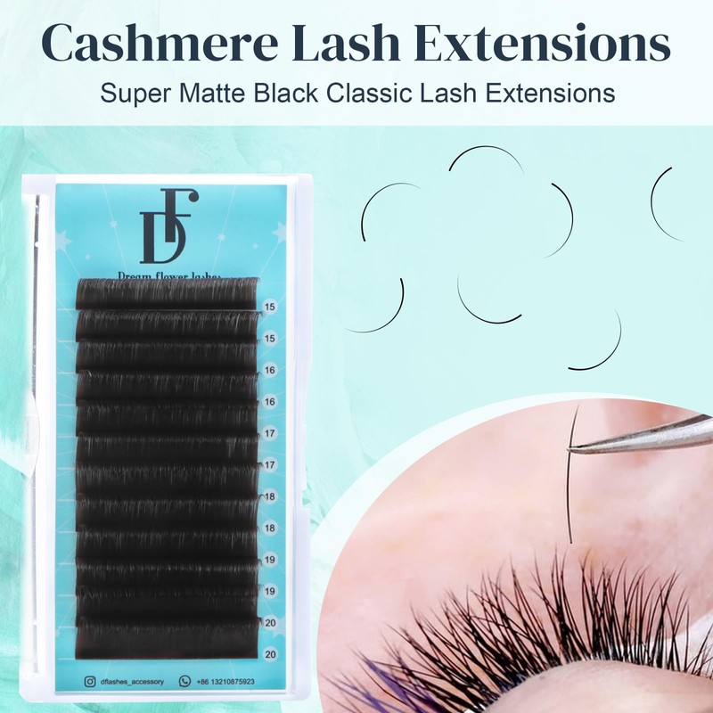DF Lash Extension Volume Lash Extensions 0.12 C Curl 15-20mm Mixed Tray Individual Lash Extensions Classic Eyelash Extensions Soft Matte Black Single Lashes Professional Salon Use