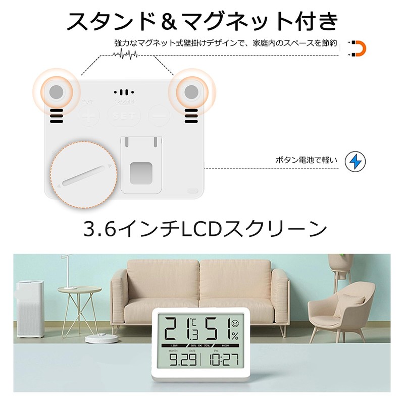 - Convenient Display at a glance: The thermometer and calendar are integrated so you can quickly check the temperature and humidity of your room. Comes with a face icon that indicates comfort and lets you intuitively know your current air condition