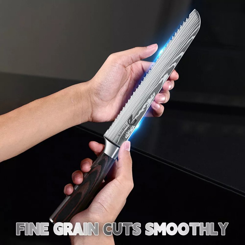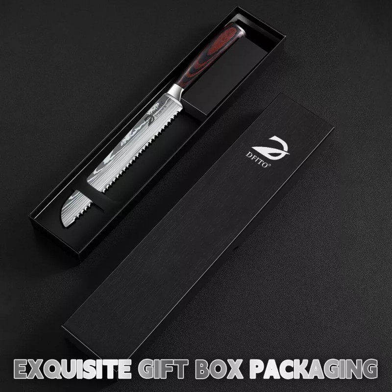 Dfito Japanese 8'' Bread Knife Japan 7CR17 Damascus Steel Kitchen Sandwich Chef Knife