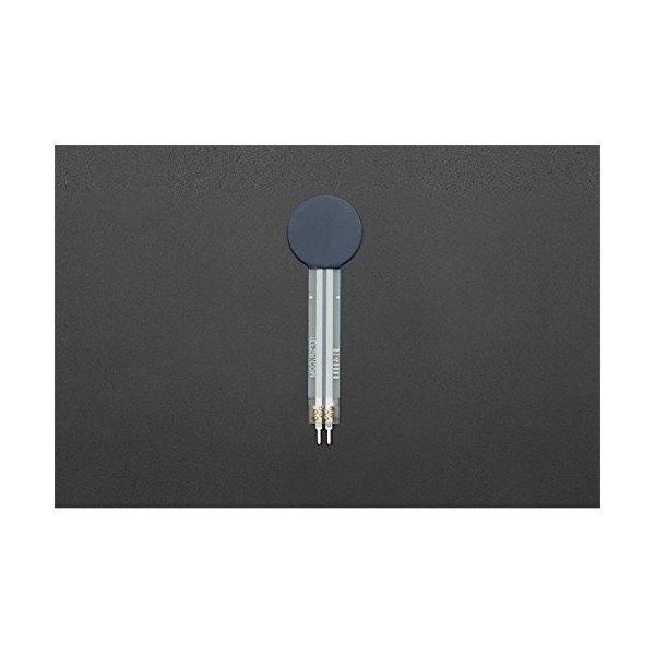'Two pins extend from the bottom of the sensor with 0.1 pitch making it bread board friendly. There is a peel and stick rubber backing on the other side of the sensing area to mount the FSR.