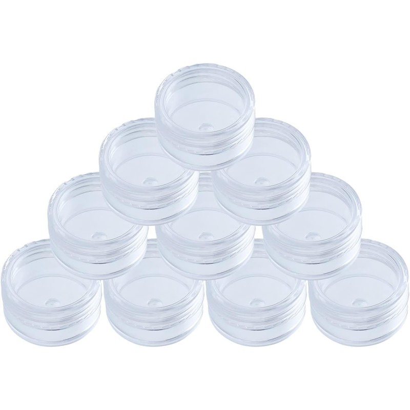 - Package: Set of 10 plastic transparent storage cases (with lids). Size:Diameter:37.5mm,Height:21mm Volume: 0.3 fl oz (10