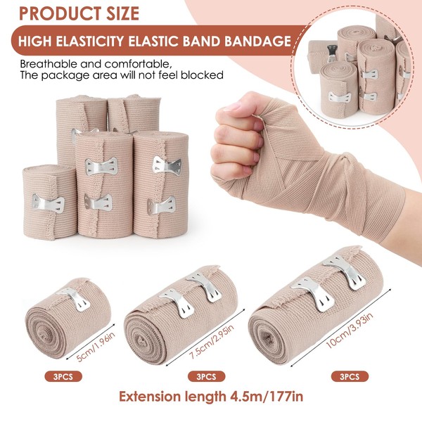 - Was Sie erhalten: in dem Paket, gibt es 9 elastische Erste-Hilfe-Bindung Zeichen, 3 Rollen von jeder Gr??e (5cm * 4,5m, 7,5cm * 4,5cm * 4,5m, 10cm * 4,5m). Die verwendung von erste-hilfe-binden h?lt sie hygienisch zwischen ihrer kleidung und ihrer haut, verhindert, dass wunden aneinander reiben und die heilung erschweren, und erspart ihnen alle arten von unannehmlichkeiten, die durch aneinander reibende wunden verursacht werden