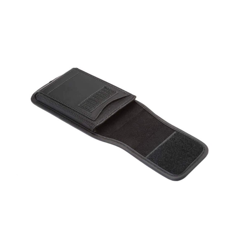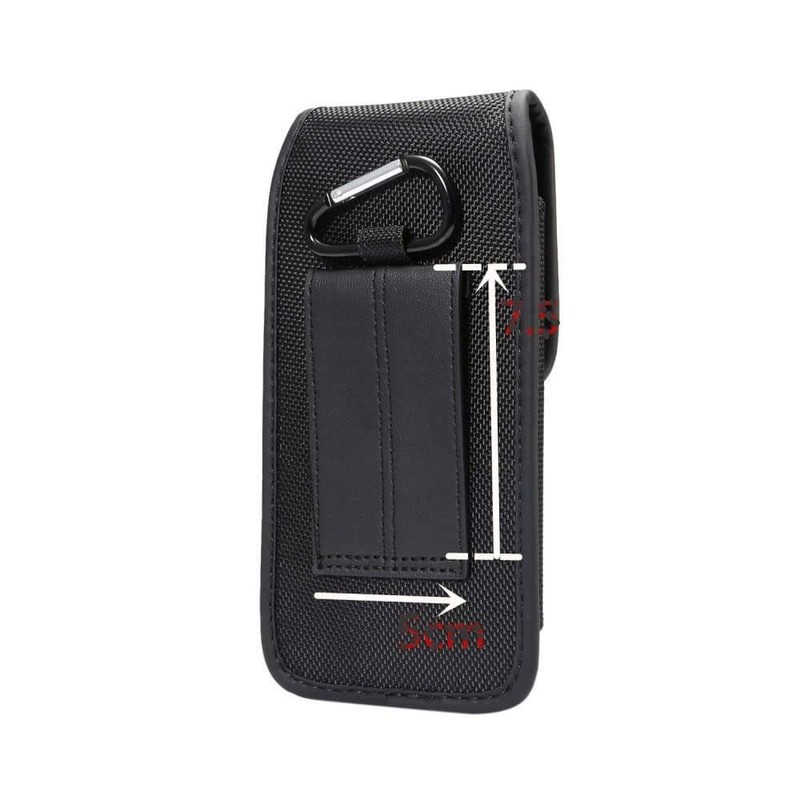- Vertical belt cover with adhesive fabric closure for maximum security. With belt loop on the back, to attach to the waist or belt. And it also has a carabiner as a way of fastening, to hold your case safely at all times.