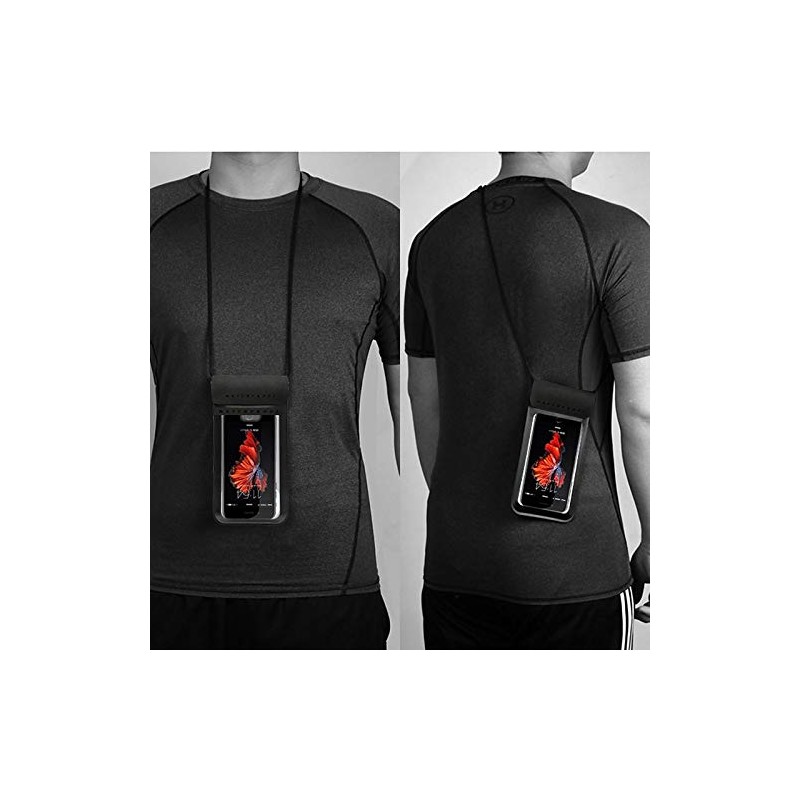 - With cord to hang around the neck, 50 cm in length (adaptable fit). Waterproof design totally waterproof, snow and ice tight and highly compatible. Offers protection for your device while maintaining full touch screen functionality. Some button may not be available when thesmartphone is inside the case, only use a touch screen.