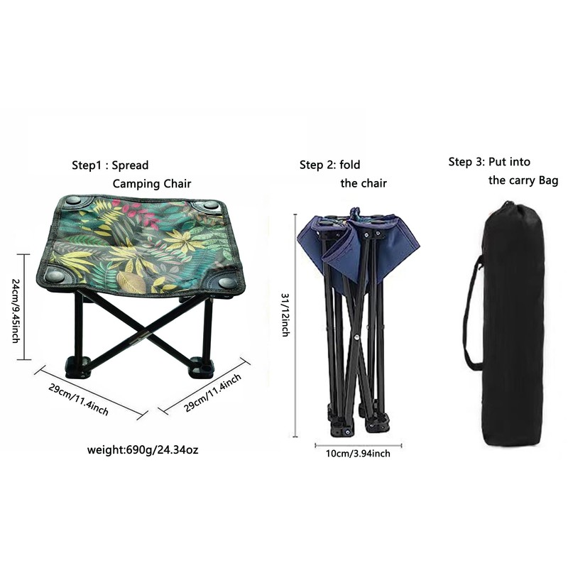 DFXIU ultralight foldable Sturdy Portable Folding Camping Stool lightweight with Leaf Pattern, 29 x 29 x 24 cm, Navy Blue, Includes Carry Bag for adults kids travel outdoor