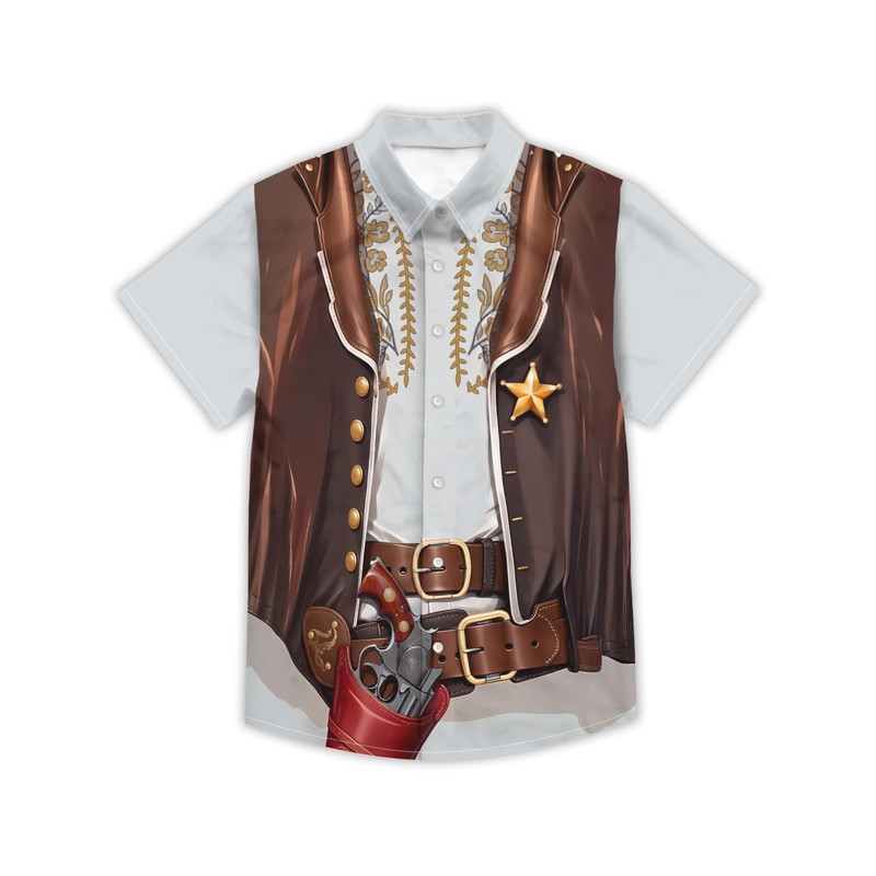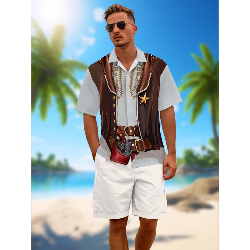 DFZ Cowboy Hawaiian Shirts for Men Western Cowboy Vacation Button Down Funny Cosplay Western Theme Party Shirt Brown