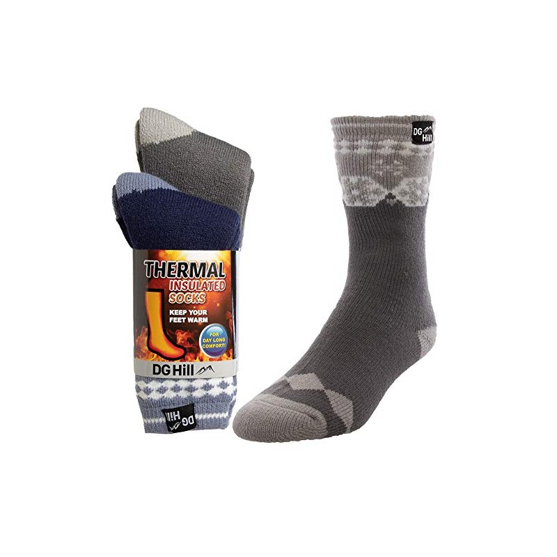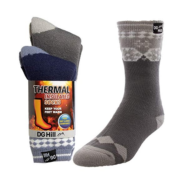 DG Hill (2pk) Mens Thick Heat Trapping Insulated Boot Thermal Socks Pack Warm Winter Crew For Cold Weather