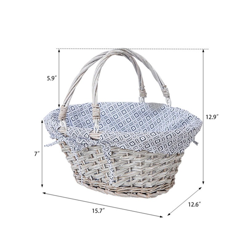 - PRACTICAL DESIGN: The wicker basket provide two folding handles and a washable lining. Basket dimensions: 15.7"L x 12.5"W x 7"H.