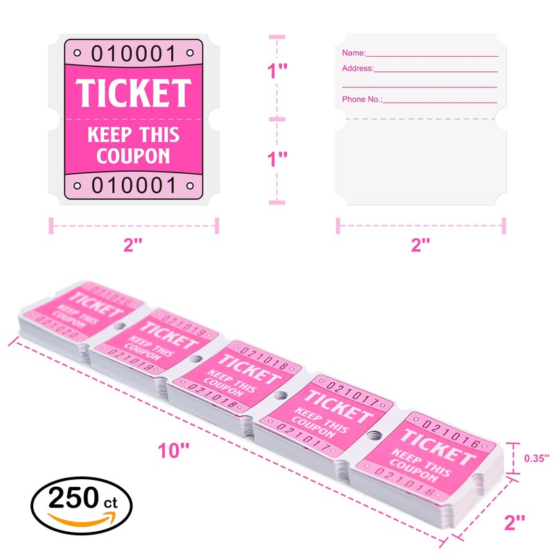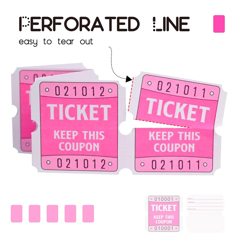 DGBDPACK 250 Pink Raffle Tickets, 50/50 Raffle Tickets, Double Tickets for Festivals, Carnivals, School Events, Baby Showers, Summer Parties
