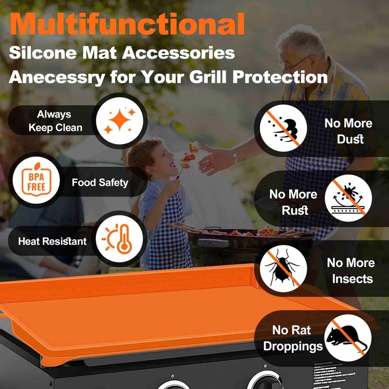 - 【What You Get】Silicone griddle cover x 1pcs, and 7 x 24h friendly customer service. The full wrap-around protection silicone mat must-have accessory for your blackstone griddle