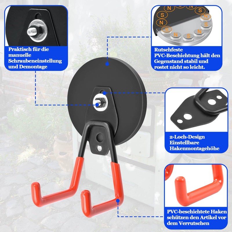 - Multi-purpose magnetic hook: Our large magnetic hooks for hanging heavy duty items and storing battery drills, kitchen utensils, clothes, backpacks and garden appliances. Strong magnets with hooks for magnetic hooks are perfect for cabinets, warehouses, barbecues, home, kitchen, office, fridge, garage or even cruise cabins and more.