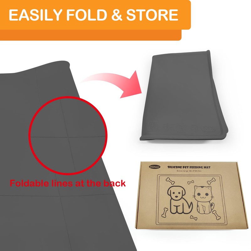 DGitaor Dog Food Mat for Food and Water, Waterproof Silicone Pet Feeding Mat for Floors with Collapsible Cat Dog Bowl for Travel Extra Large 39.4"x29.5"