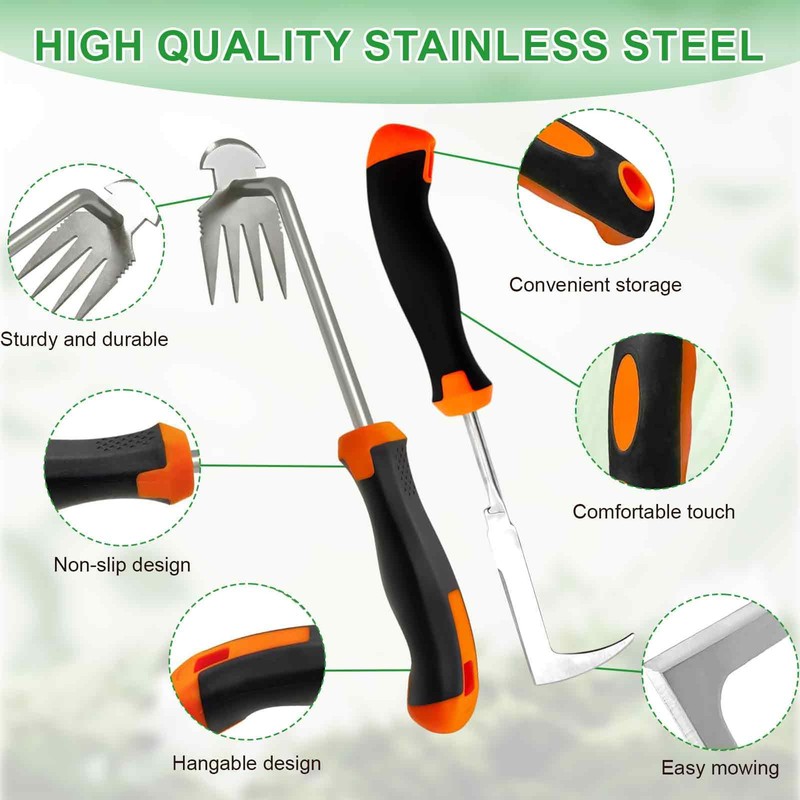 - Professional design: specially designed for different types of weeds, with special tools for flat (gap scraper) and deep roots (Y-shaped weed cutter) as well as a 4-prong hoe for loosening the soil, ideal for removing weeds such as dandelions, thistles and moss