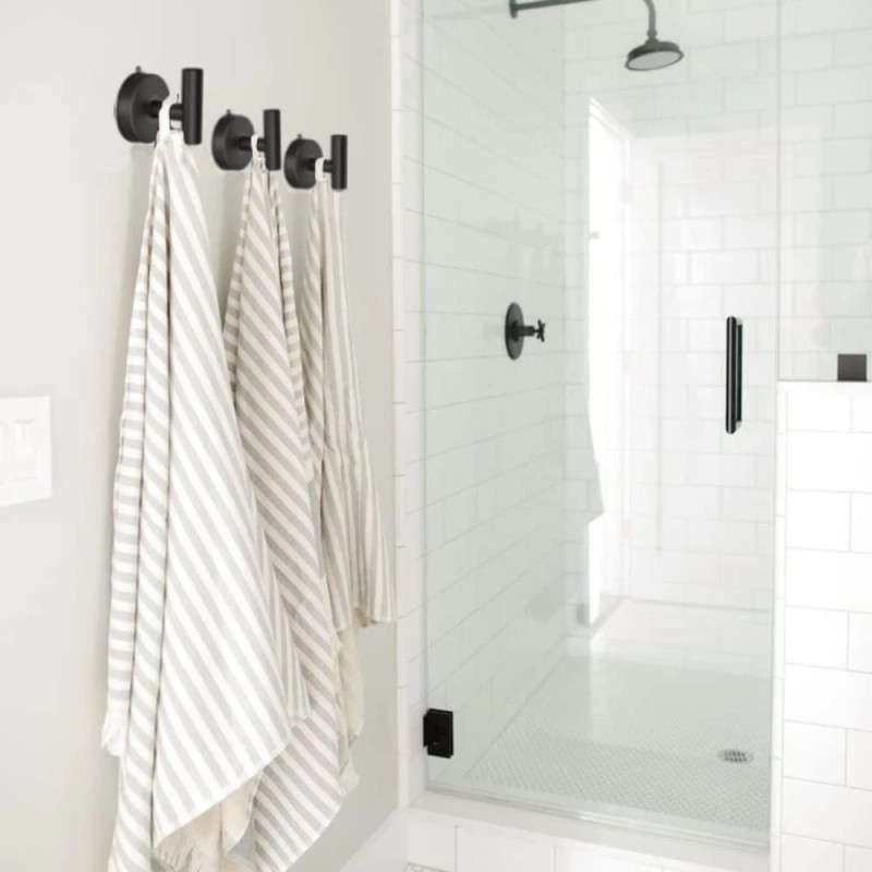 Matte black towel hook for bathroom wall employ modern style simple style design, beautiful and fashionable, black bathroom hooks for towels compatible with any other bathroom accessories, suction cup shower hook prefect for bathroom, kitchen, laundry room. This self adhesive hooks for hanging can also used to store daily household items, such as umbrella, coat, robe, clothe etc.