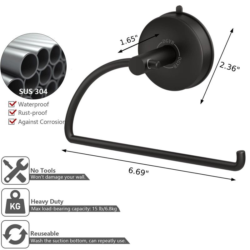 DGYB Suction Cup Hand Towel Ring Black Hand Towel Holder for Bathroom Wall SUS 304 Stainless Steel Kitchen Towel Hanger
