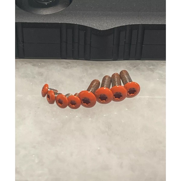 These are higher quality stainless steel upgrade (T6 and T8) torx screws replacing actory’s low carbon steel screws. Made from high tensile 18-8 stainless steel for corrosion resistant. Rescue Orange powder coating finish. Low profile button head for flush mount.