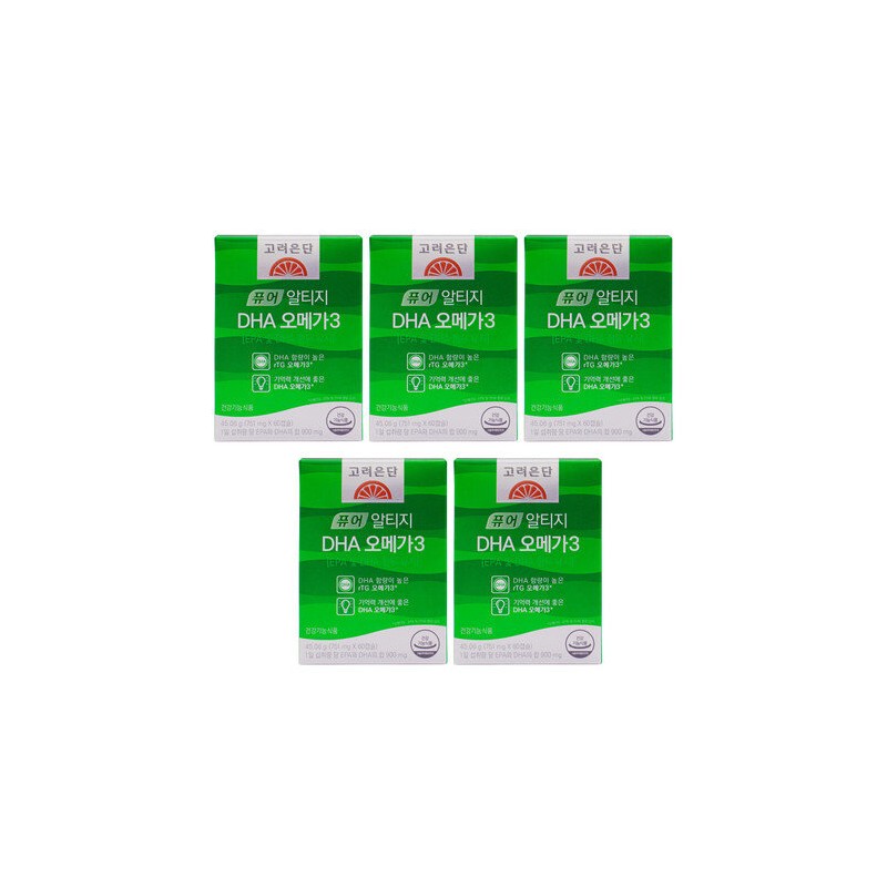 고려은단 퓨어 알티지 DHA 오메가3 751mg X 60캡슐 5통
