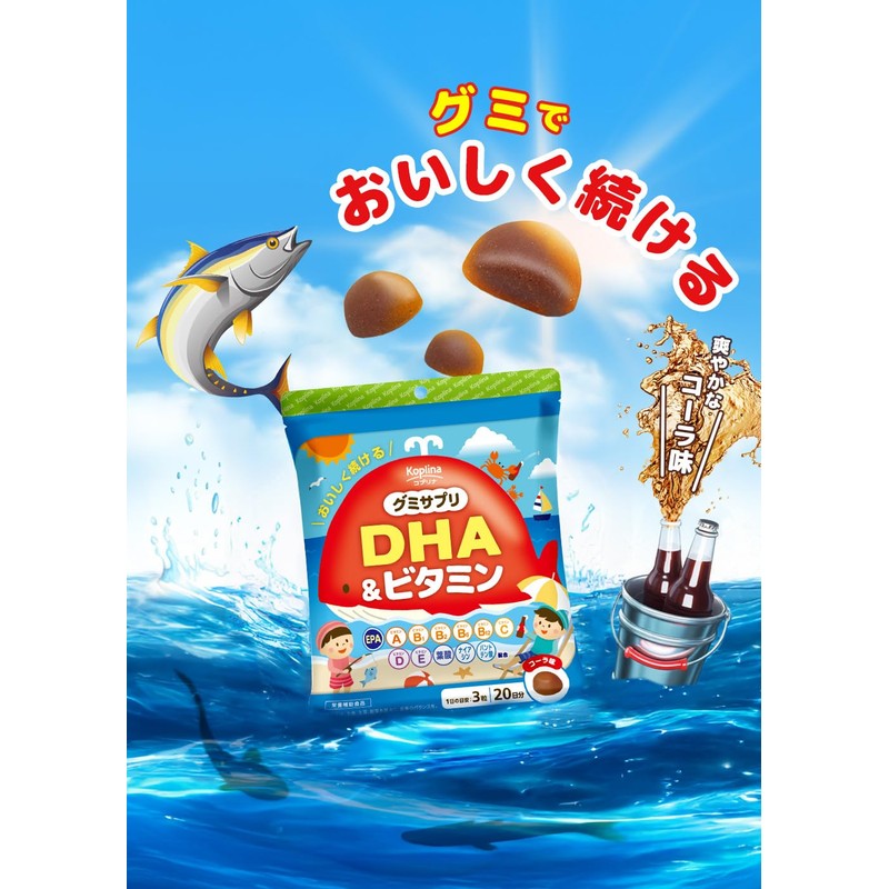 グミサプリ DHA&ビタミン 60粒 2個セット40日分 【コーラ風味 おいしい オメガ3 omega-3 青魚 魚油 フィッシュオイル マルチビタミン かむ力 子ども 健康 サプリ サプリメント 栄養補助食品 安心国内製造 コプリナ】