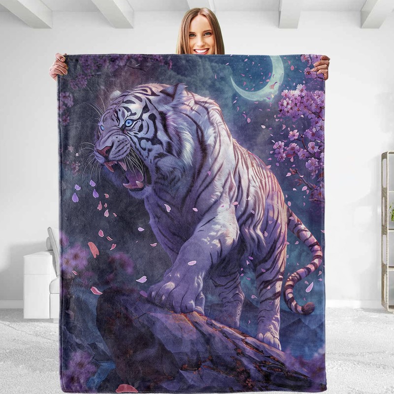 dhakalrlde Majestic Tiger Throw Blanket - Soft Plush Flannel Blanket, Lightweight, Comfy, Fuzzy, Warm, Anti-Pilling for Sofa, Bedroom, Bed, Living Room, Outdoor 50in×60in