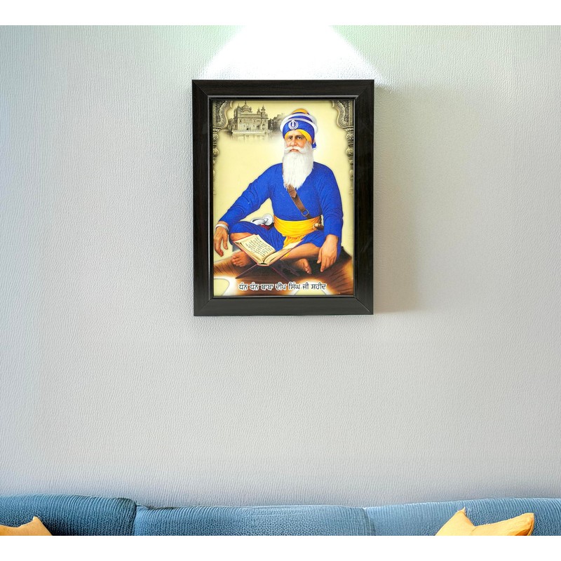 Dhan Dhan Baba Deep Singh Shaheed Photo Frame Portrait Blue Bana Dress - A Sikh Warrior Wall Art for Hanging - Guru Nanak Dev Ji Frame 1 Inch Thick 36X28 CM