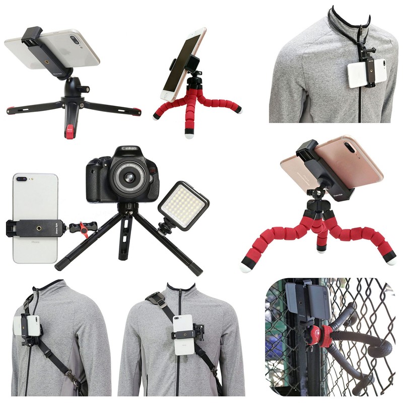 • Fits any standard tripod with dual ¼ inches-20 threading: Easy to install any smartphone on tripod without tools. The standard 1/4" thread screw make it a useful versatile cell phone tripod mount adapter. Quick operation to setup, perfect for taking Selfies and recording videos hands free, Portable with light weight, easier carry for a trip, travelling, and any outdoor activities. Silicon padded on top and bottom, providing stable grip.