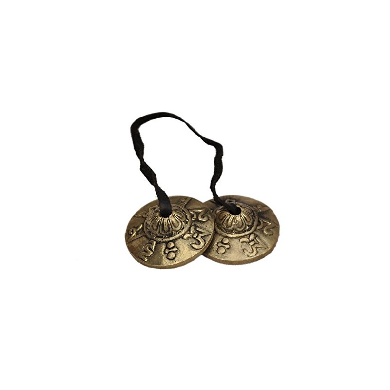 Dharma Store Tingsha, tibetische Handzimbeln, klein, verziert mit dem Mantra Om mani padme hum