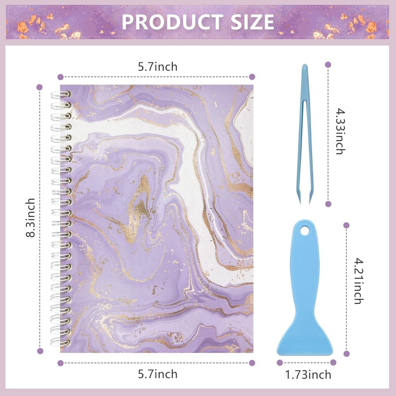 DHATMYC Reusable Sticker Book Collecting Album A5 Size 60 Sheets Sticker Collection Storage Book for Adults Release Paper Sticker Saver Organizer Book with Tools (Light Purple)