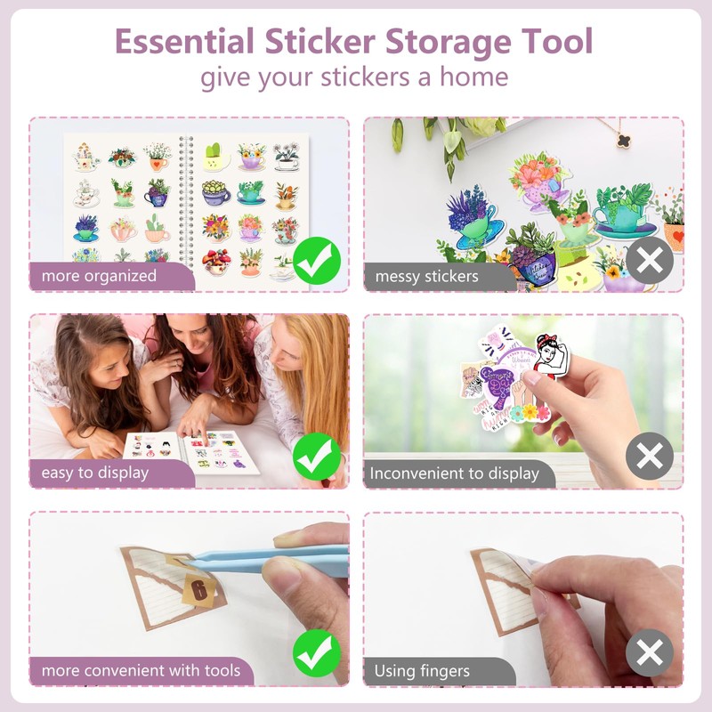 - Versatile Accessory: Our sticker storage book can be used for all sorts of stickers including those stickers for planners, journals, scrapbooks, decorating laptops, and more. It’s a must-have accessory for anyone who loves stickers and staying organized.