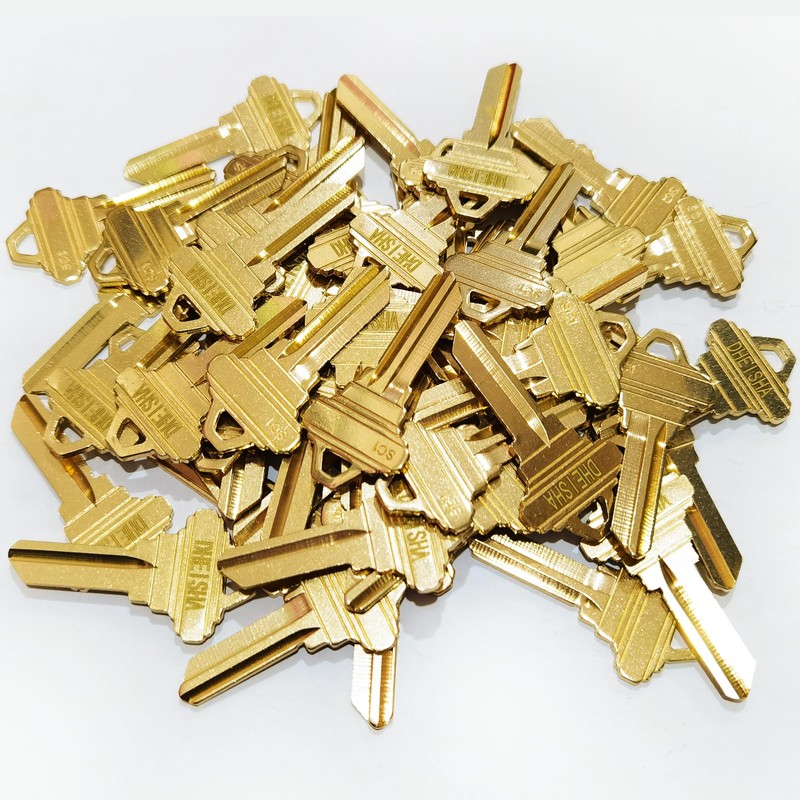 DHEISHA SC1 Key Blanks in Sturdy Brass-50 Pack Compatible with 5-Pin Locks Uncut Blank Keys for Freely Customizing by Locksmiths or Any Individual