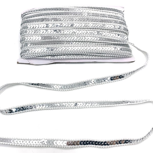 DHER 25 Meters Long Sequin Decorative Ribbon, 12mm Glitter Sequin Ribbon, Sequin Trim Ribbons, Border Fabric Sequin Trim, Glitter Ribbon (Silver)