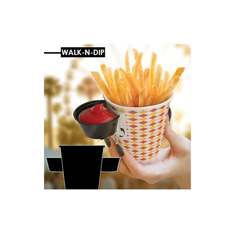 - The Walk-N-Dip features a cut out that holds standard 2-3.25oz portion cups.