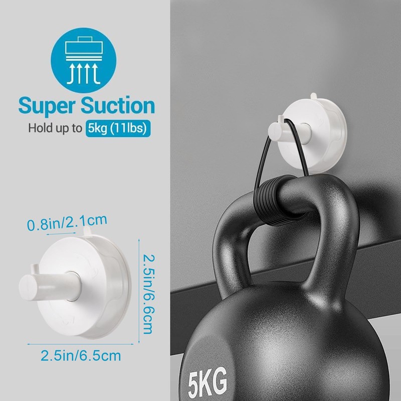 - DURABLE DESIGN: Made of ABS, these suction cup hooks can securely hold items up to 5lbs like towels, robes, pots and pans.