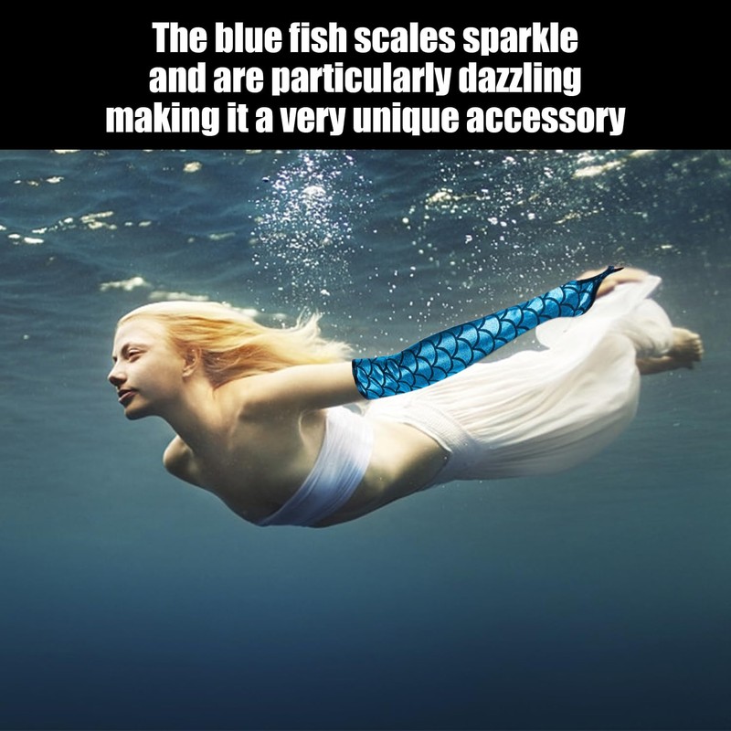 DHSBGWSX 1 Pair Fish Scale Gloves, Women's Mermaid Costume, Women's Fishtail Top, Women's Mermaid Accessories, Fish Costume, Women's Underwater World, blue
