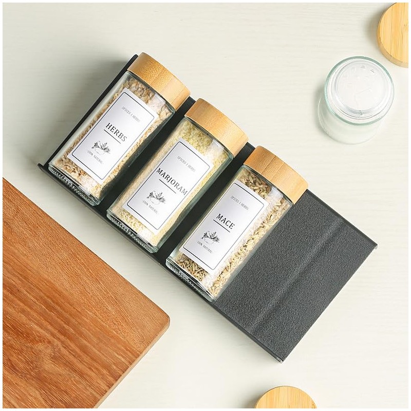- Slanted Design The slanted design of the spice rack provides good visibility while allowing quick access to the spices without tedious rearrangement.