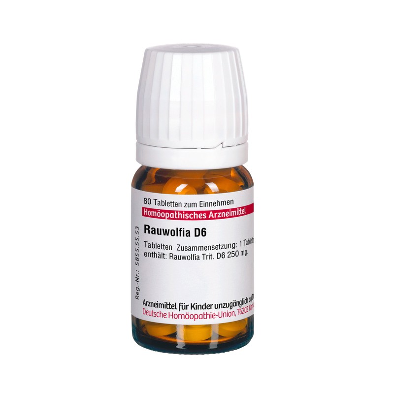 Rauwolfia D 6 ist ein homöopathisches Arzneimittel. Registriertes homöopathisches Arzneimittel, daher ohne Angabe einer therapeutischen Indikation.