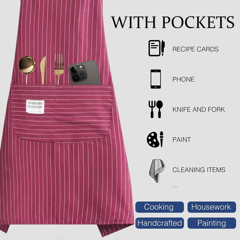 Pocket design: with two front pockets, our restaurant apron offers additional space for your mobile phone, pens, forks, spoons, pots, cooking recipes and more. This makes cooking easier and more convenient.