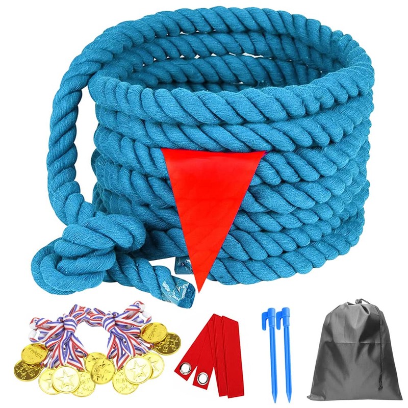 - 【Soft & Durable】60FT, Field day Tug of war Rope is made of natural twisted cotton which is soft, non-toxic, bright color and won't hurt hands. Tug of war Rope is 0.78in thick-Easy grip and pulling for kids and adults. outdoor games and yard backyard lawn games.perfect for team building activities.
