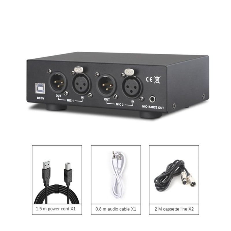 - Phantom power supply is a 2 groups balanced power supply, balanced input and output signals, supporting dual microphones for simultaneous use and suppressing common touch interference.
