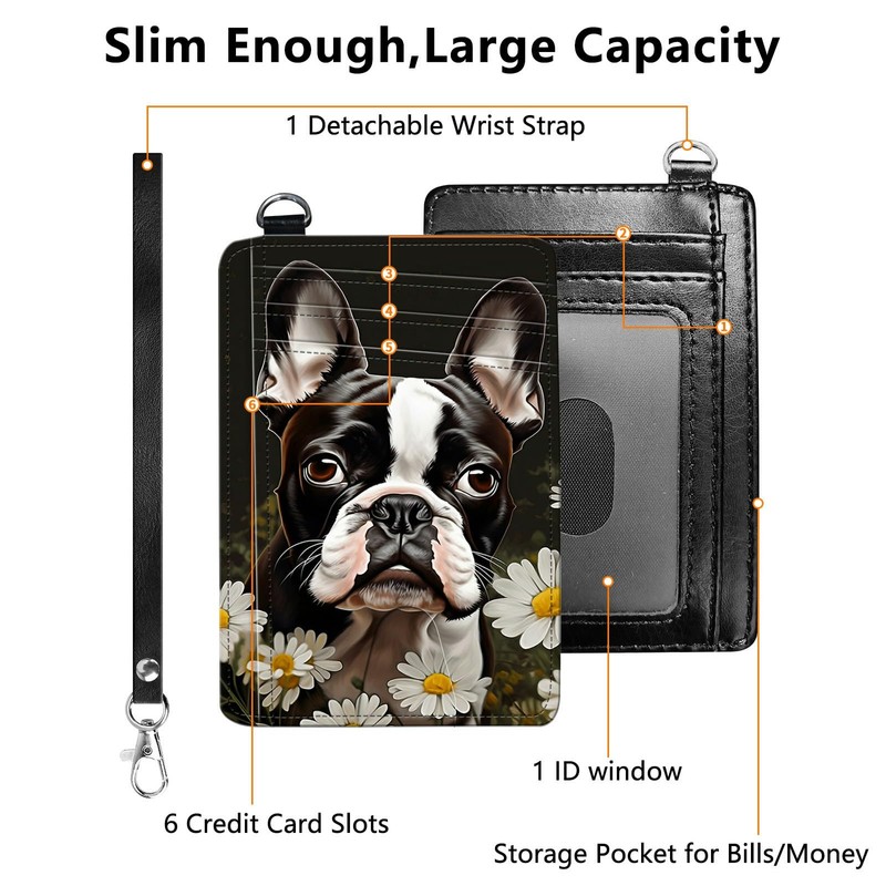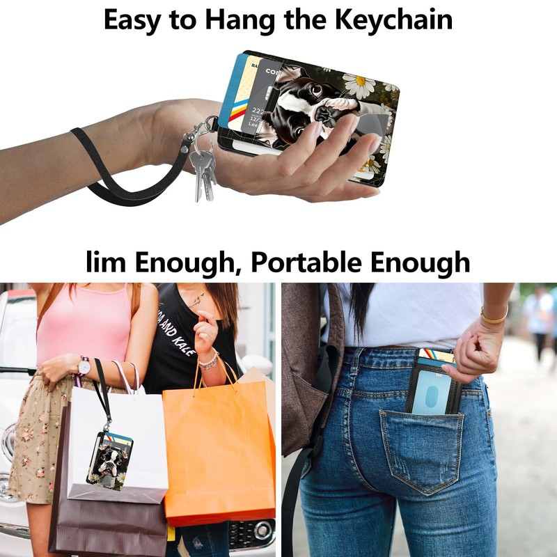 DHYYDSQZ Slim Minimalist Wallet for Men Women Small Credit Card Holder Wallet Front Pocket RFID Blocking Wallets Travel Thin Card Case with ID Window Card Organizer & Wristlet,Boston Terrier Dog