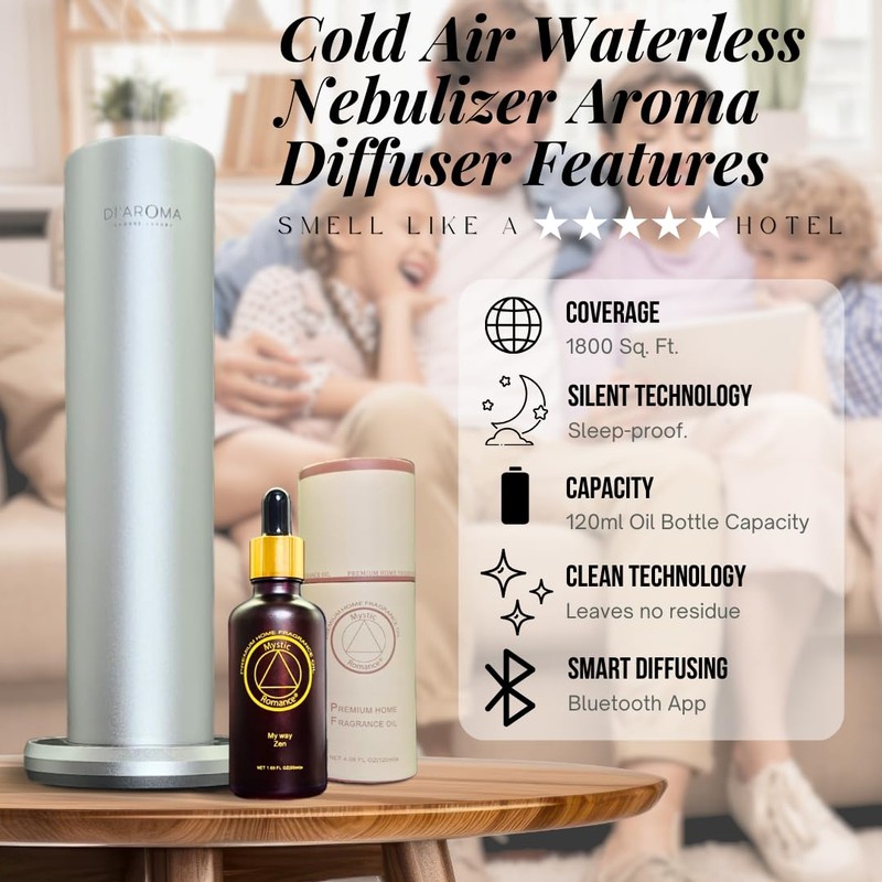 - Effortless Luxury Scenting – Enhance your home or business with consistent, pure fragrance using the Di'Aroma Nebulizer, designed for spaces up to 1800 sq.ft.