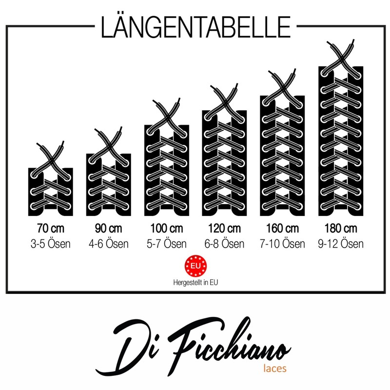 - The Di Ficchiano quality flat shoelaces 7 mm wide are made from 100% fine cotton and very tear-resistant for a shoe strap made of cotton. Our laces are exclusively made in Europe.