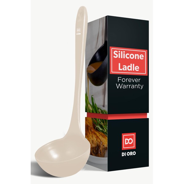 DI ORO - Cucharón de silicona - Cucharón de sopa para cocinar y servir resistente al calor - Cucharón de sopa de cocina grande antiadherente - Cuchara para servir sopa con tazón ancho, utensilios de