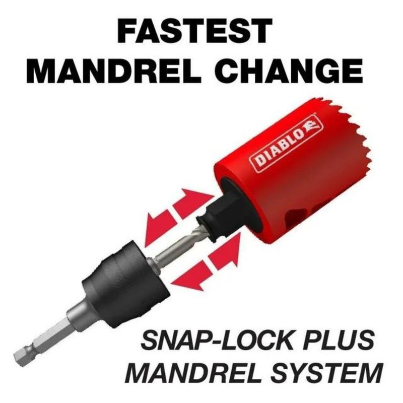 - 1-size fits all mandrel fits all Diablo hole saws, from 5/8 in. to 6 in. Dia