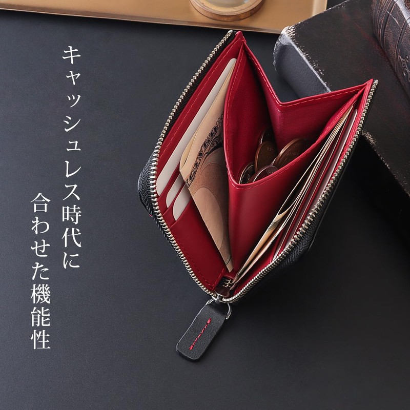 - Compact but Large Capacity: This L-shaped zipper wallet is compact and has no unnecessary functionality. The coin purse has a wide gusset that is easy to see and easy to remove and remove smoothly. You can put your IC cards in the outer pocket to touch without having to open the wallet. There are 6 card pockets, and if you have more than 7 cards, you can also store cards in the bill compartment