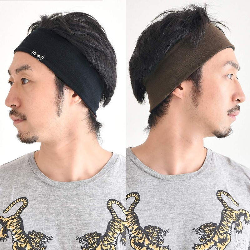 Diadema deportiva para hombre que absorbe el sudor – algodón absorbente reversible, fabricado en Japón, marrón-negro , Talla única