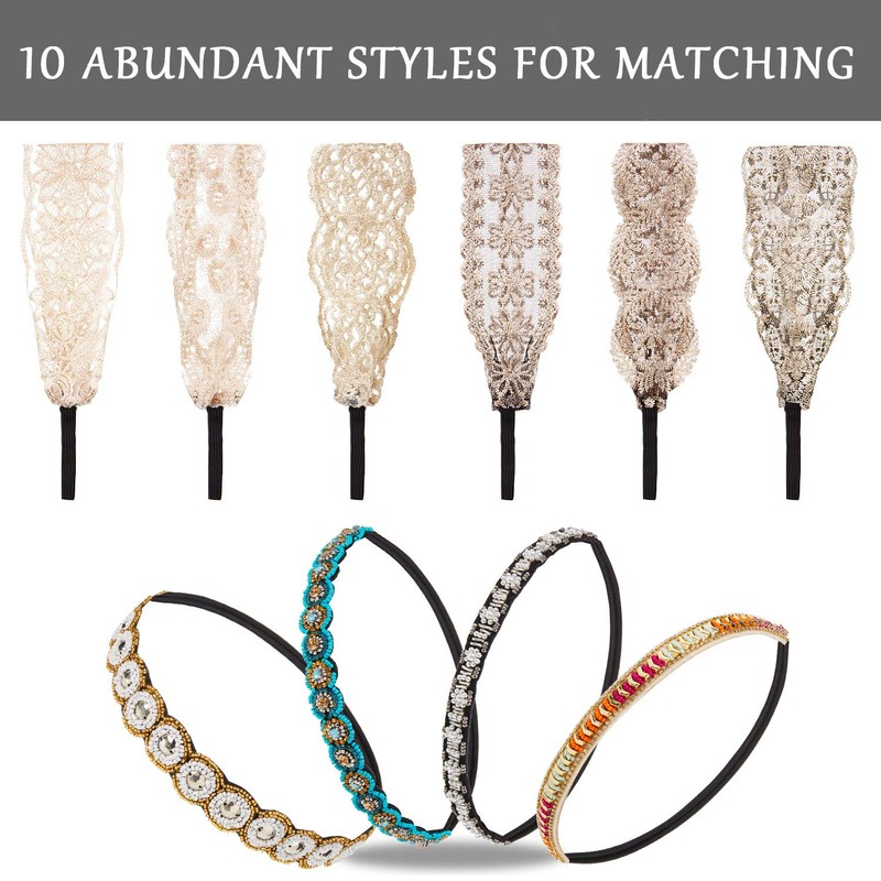 • Lo que obtienes: cada paquete viene con 10 diademas hechas a mano en 2 estilos diferentes, incluyendo 4 piezas de bandas de pelo con abalorio de diamantes de imitación y 6 piezas de cintas elásticas para el pelo, cantidad suficiente para su uso diario.