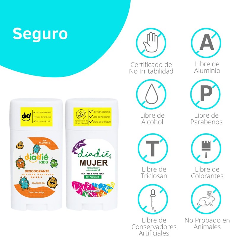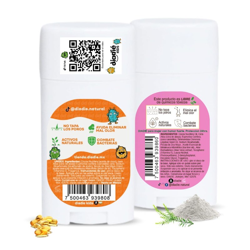 DIADIÉ Desodorante natural. 2pack. Diadie Kids. Diadie. Mujer. Elimina mal olor. No tapa los poros. Para niños. Para mujer. Proteccion 24hrs. kids, mujer